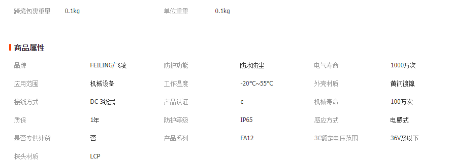 浙江飞凌 /直销高品质M12接近开关 体积小功能强FA12-4NA 常开 NPN 1个