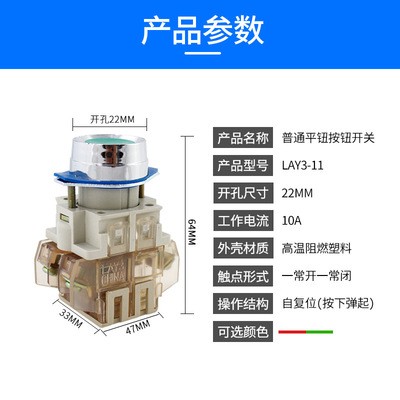 [品质保证]LAY3-11普通平钮按钮开关 点动开关 红绿色 22mm
