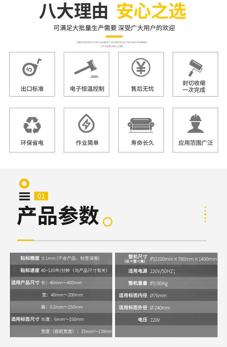 详细信息 商品属性 订货号 加工定制 货号 类型 品牌 型号 贴标速度 贴标精度± 标签最大宽度 被贴物尺寸 适用对象 包装材料 包装类型 适用行业 自动化程度 售后服务 规格 是否跨境出口专供货源 商品描述
