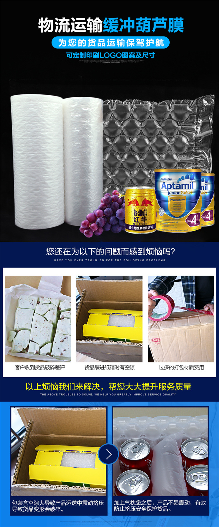 40*30cm葫芦膜300米充气气垫膜缓冲防震物流包装填充葫芦球气泡膜