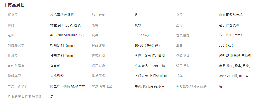 威盼全自动食品包装机,采用多头电子组合秤计量方式,由PLC电脑系统操作,具有包装迅速、精准度高的优势;还选用食品级304不锈钢材料,耐高温低温防腐蚀,材质厚实,安全卫生,请放心购买。