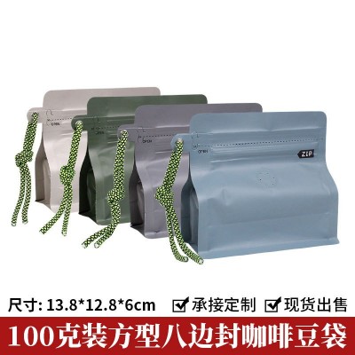 100克单向排气阀咖啡袋 八边封牛皮纸铝箔自立袋咖啡豆包装袋1只