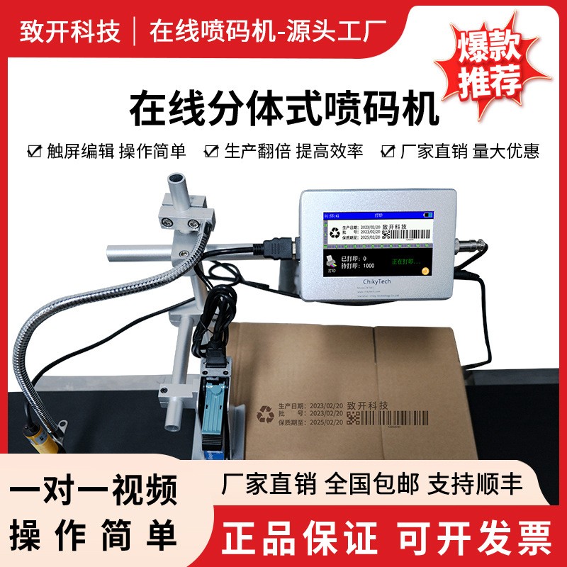 ZK1686S在线传输带喷码机分体高清晰打码机高端打印日期包装连喷