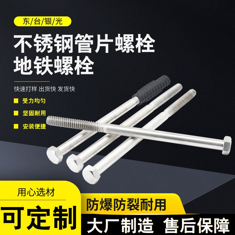 东台市银光不锈钢制品厂是不锈钢对拧螺丝、不锈钢方颈螺栓、不锈钢管片螺栓 地铁螺栓、不锈钢铆钉、不锈钢预埋件 预埋套筒 316L 304、哈芬槽T型螺栓304 316等产品专业生产加工的公司,拥有完整、科学的质量管理体系。东台市银光不锈钢制品厂的诚信、实力和产品质量获得业界的认可。欢迎各界朋友莅临参观、指导和业务洽谈。v