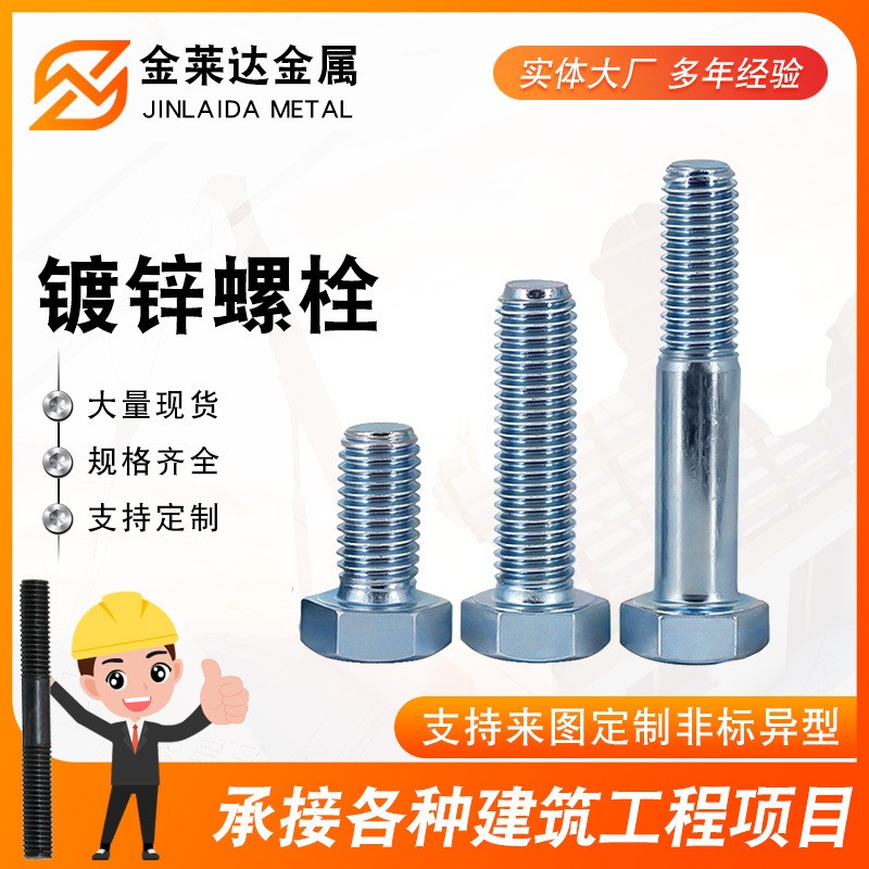 供应镀锌螺栓 外六角镀螺栓 蓝白锌镀锌螺丝 GB普通30栓