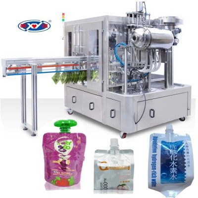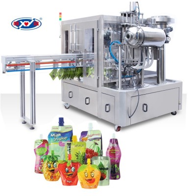 自立袋灌装旋盖机适用于带吸嘴自立袋的液体或粉剂或膏体的灌装及封口。 广泛应用于食品、饮料、酿造、医药等领域。例如: 富氢水、吸吸果冻、奶茶,酸奶﹑果汁﹑豆浆,豆奶,调味品,酱料,调味品,饮料,洗衣液等其他食品的充填封口。