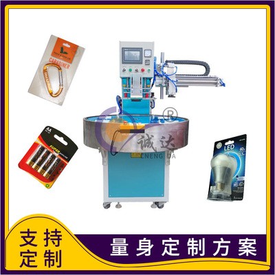 自动取料圆盘吸塑包装机,适用于PVC、环保PET(APET、PETG、HPET、GAG等)双面泡壳包单面泡壳(泡壳+卡纸)包装封口(切边)