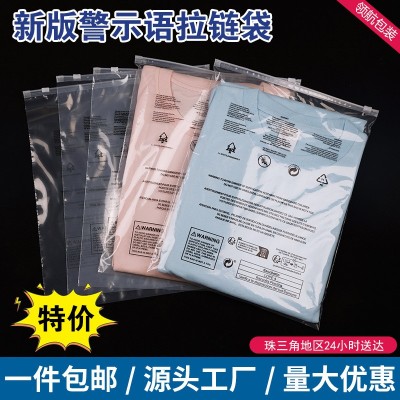 最新跨境标识temu警示语包装袋现货包邮衣服收纳pe透明 服装拉链袋