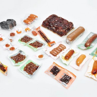 (6)气调锁鲜包装:结构以 APET EVOH PE 等材料组合而成,通过一定的保鲜气体,去替换包装盒内的自然空气,通过包装材料的选择,良好的封口工艺,在冷藏的温度下,延长了保质期和保鲜期。适用于熟食,冷鲜肉,禽类等各种不易保鲜的肉食品。