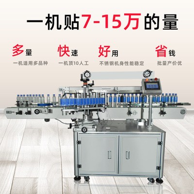 高速矿泉水红米酒套标粘标机 直线式全自动灌装产线热熔胶贴标机