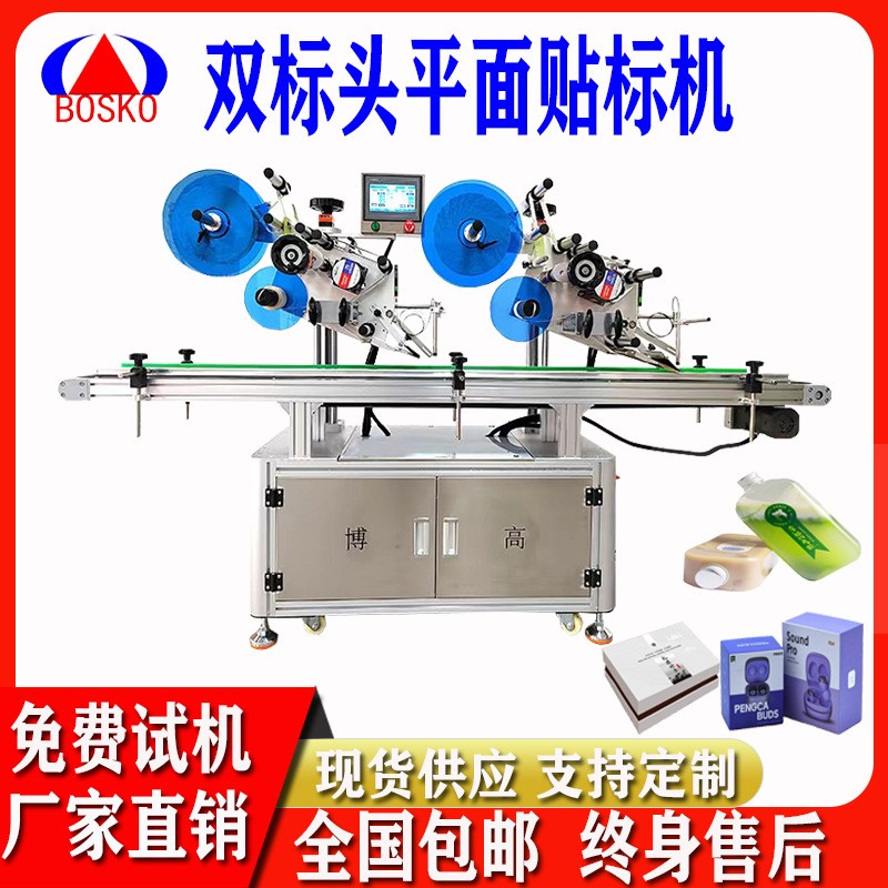 全自动双标头平面贴标机纸盒礼盒纸箱子扁瓶洗手液沐浴露贴标机器